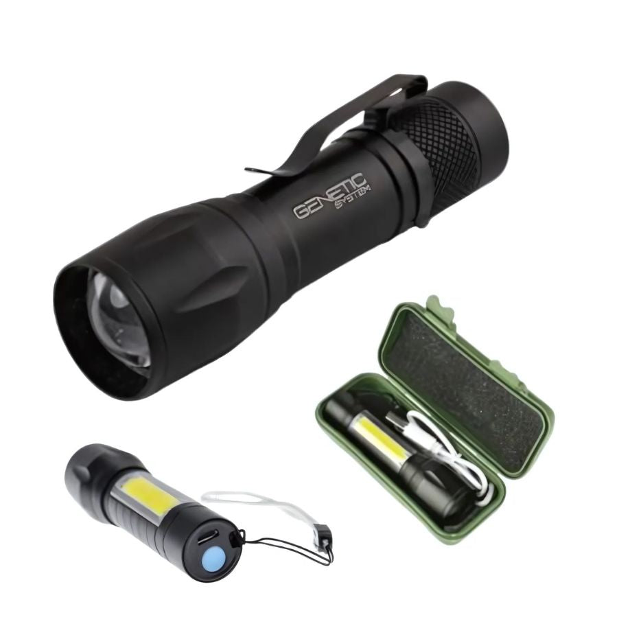 Lanterna LED CREE + COB, Zoom, 1000 Lumeni, Aluminiu, Rezistenta Apa, USB, 10 cm